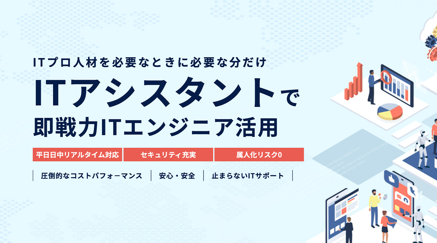 必要なときに必要なスキルを持つIT人材を柔軟に活用できる仕組みで、採用リスクを抑えながら業務を効率化し、技術面の課題を迅速に解決します。