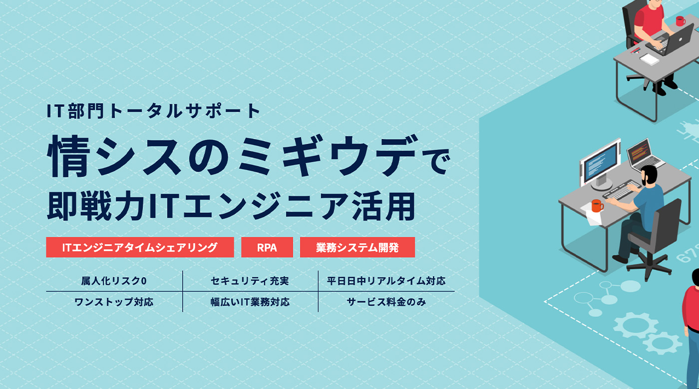 情報システム部門の代行として、RPA導入・システム運用・業務効率化をワンストップで支援。中小企業のIT体制強化を実現します。
